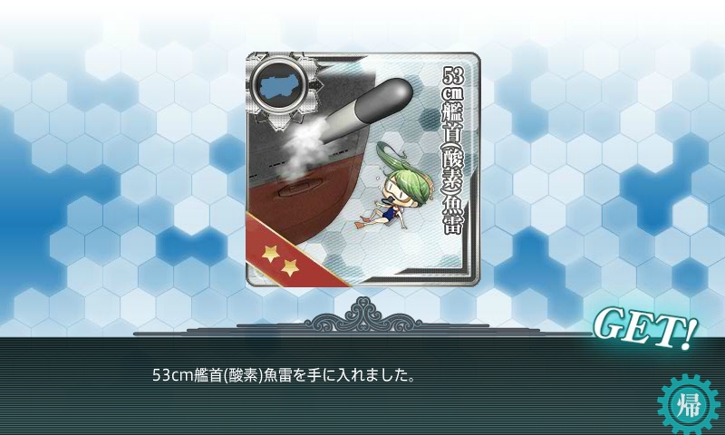 報酬は53cm(艦首)酸素魚雷の他に、応急修理要員、応急修理女神、特注家具職人でした。