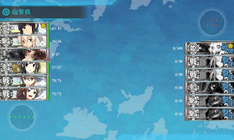 単横陣だと火力が出ず、敵艦を潰せず、敵の攻撃が当たるときは当たるし、そうなれば高い確率で中破・大破まで持ってかれて帰還不可避でした。