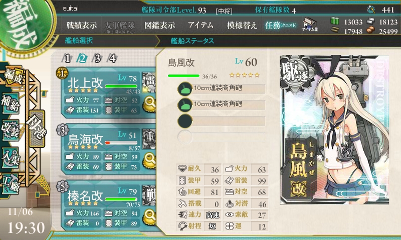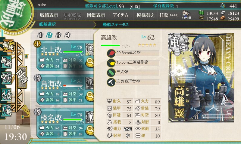 E-5の情報収集をしつつ、1週間ほどは遠征と程々のレベリングにしておきましょう。