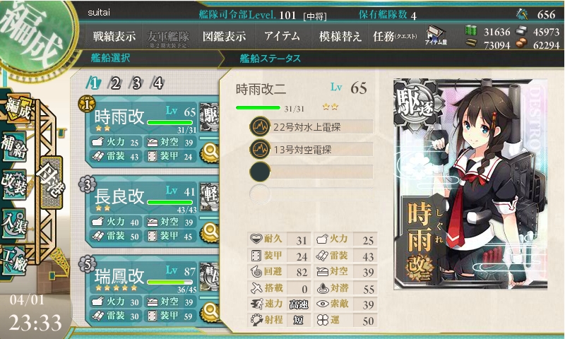 4月23日の艦これ1周年に合わせて春イベントを実施するそうなので、それまでに戦力を整えて、備蓄をしっかりしていきたいところです。
