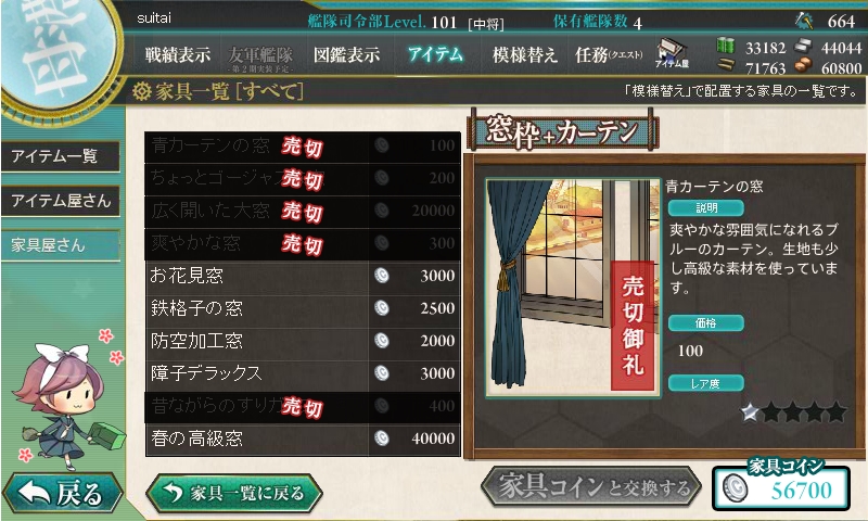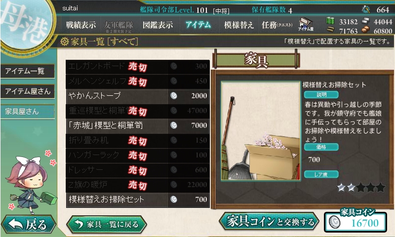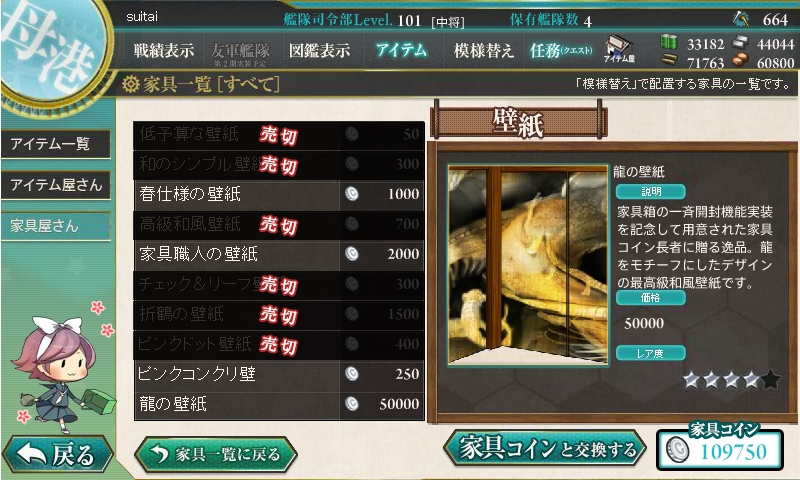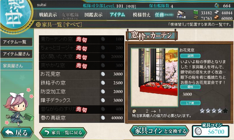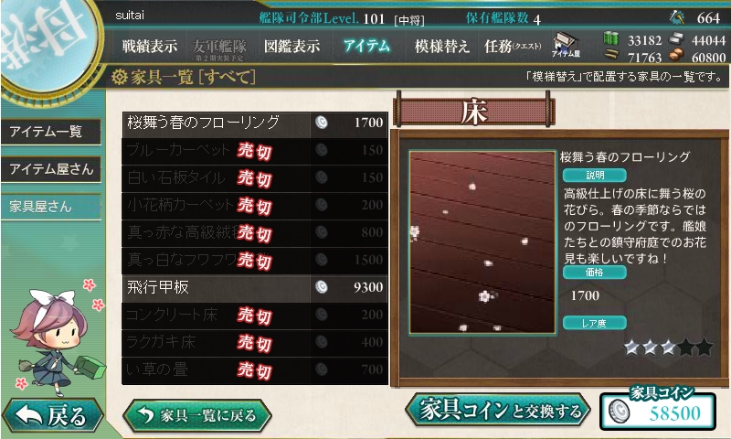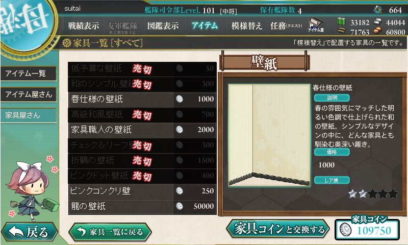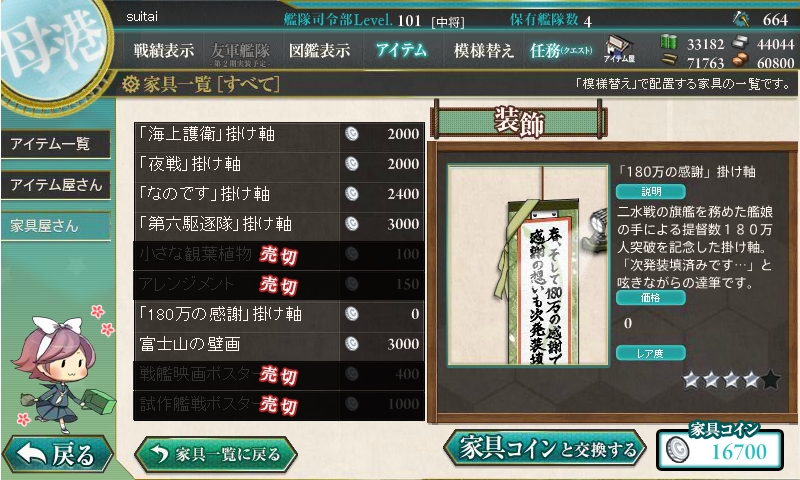 家具が大量更新されました。春使用の家具に加えて、180万人登録記念の掛け軸も。