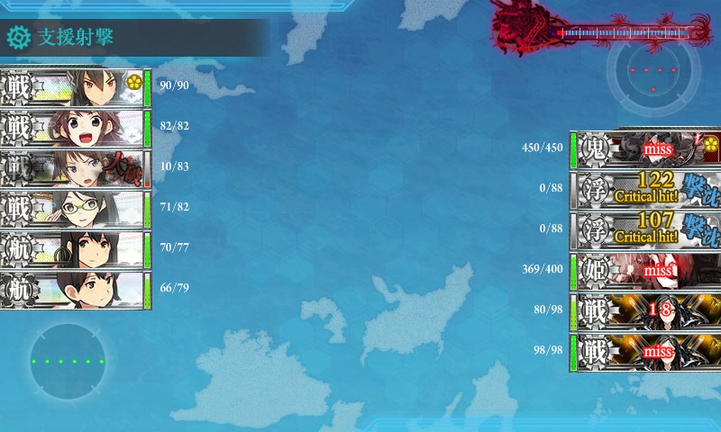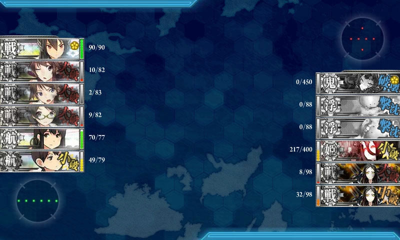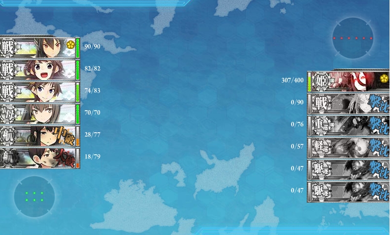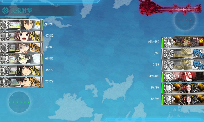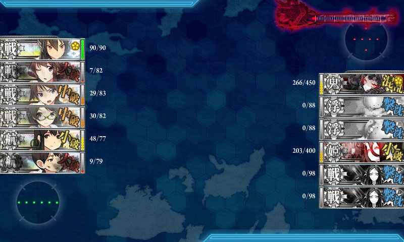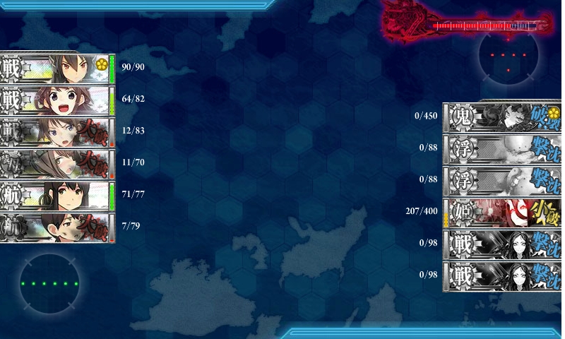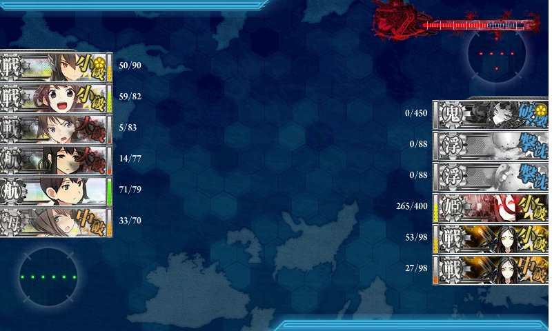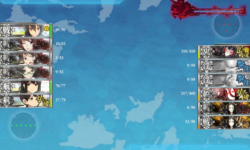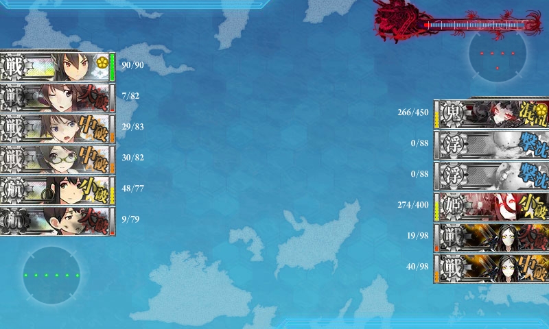 ゲージを半分まで削った時に、道中大破が嵩んだので、出撃艦隊を現在の編成に。
