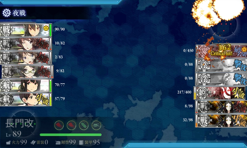 ただ、夜戦で攻撃可能な艦が長門一人なので、下の姫やら戦艦やらを狙う可能性を考えると、