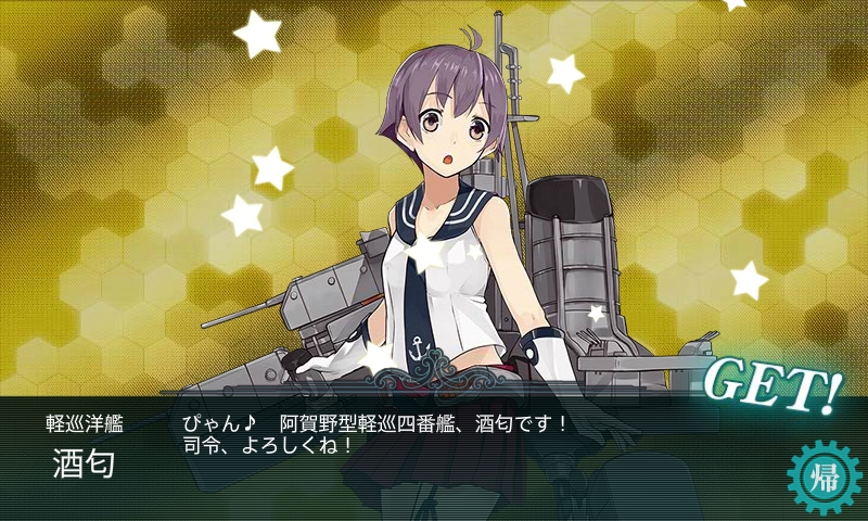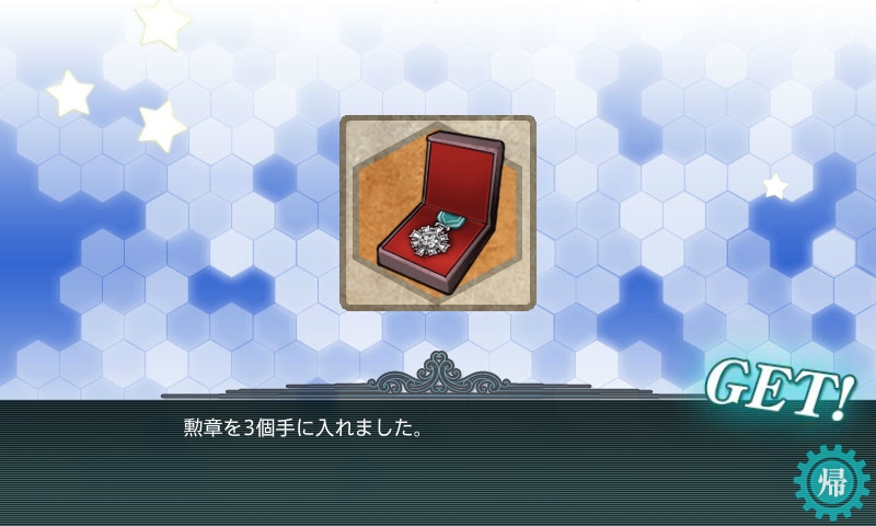 海域撃破ボーナスは勲章×3と酒匂(さかわ)ちゃん。
