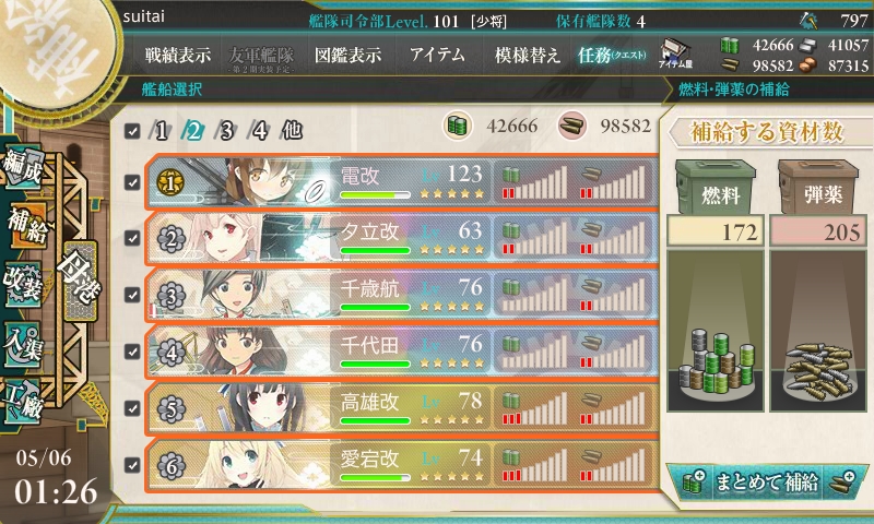 (武蔵Lv86がいたけど使わなかった…未改造だし......)