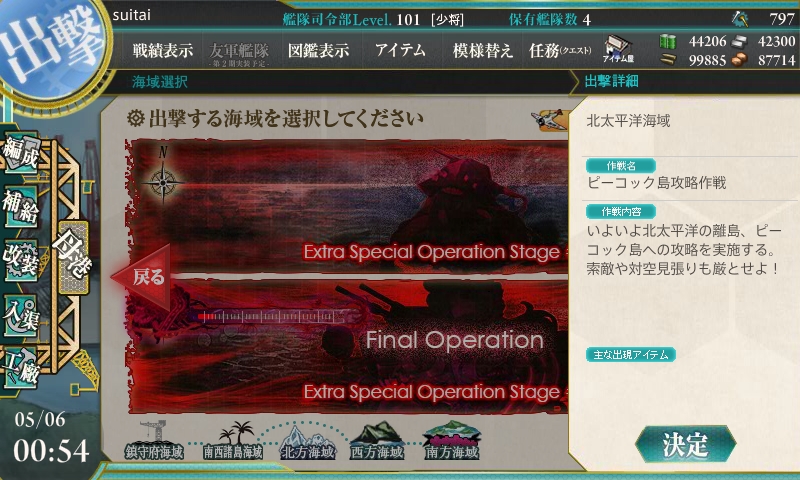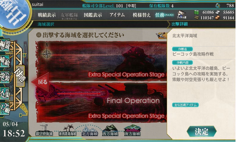 前回、大湊警備府所属のsuitai提督は何とかE-4海域を突破し、E-5海域への出撃が許可された。