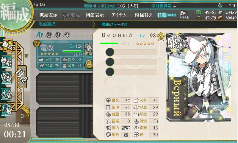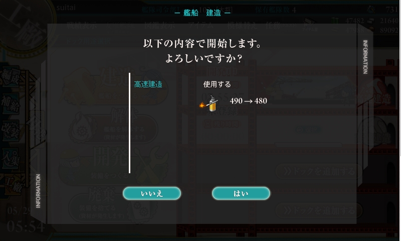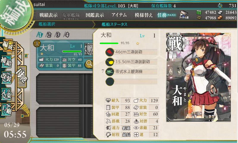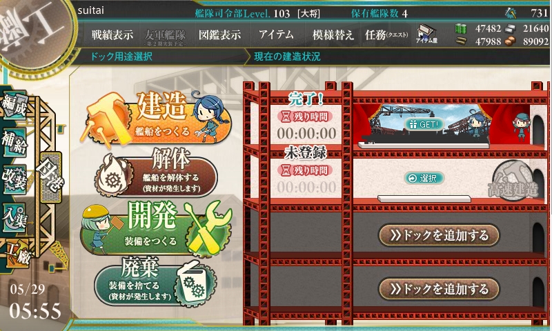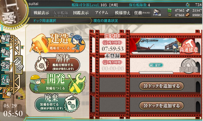 (春イベ終わってから地道に2日に1回戦艦レシピはつらかった…(資源的な意味で)