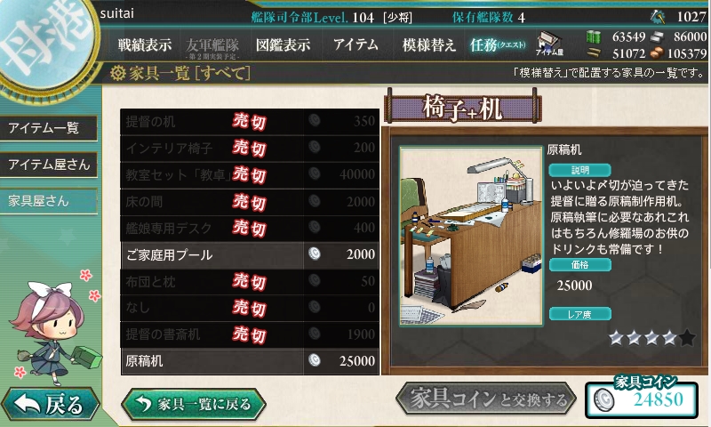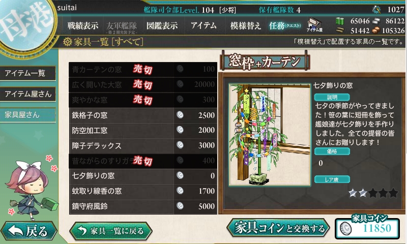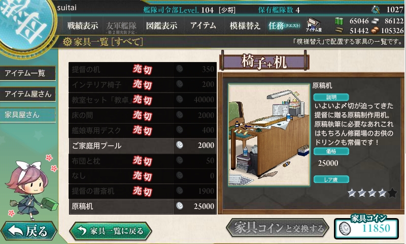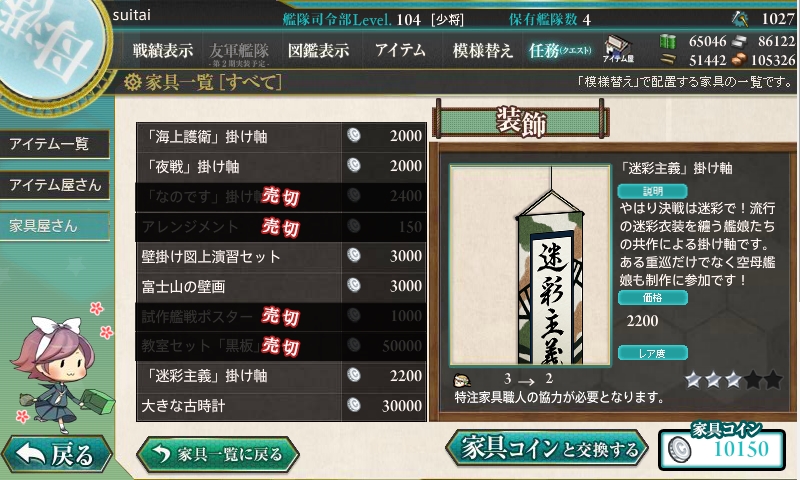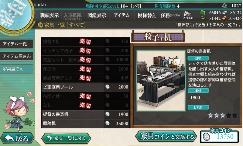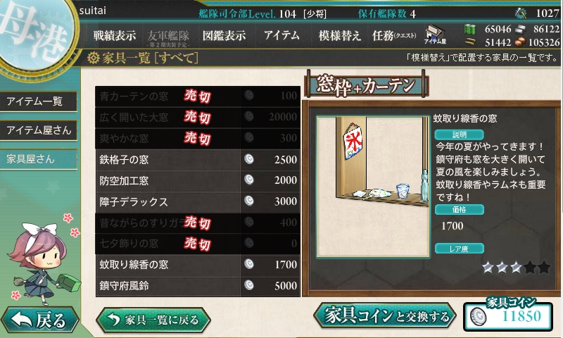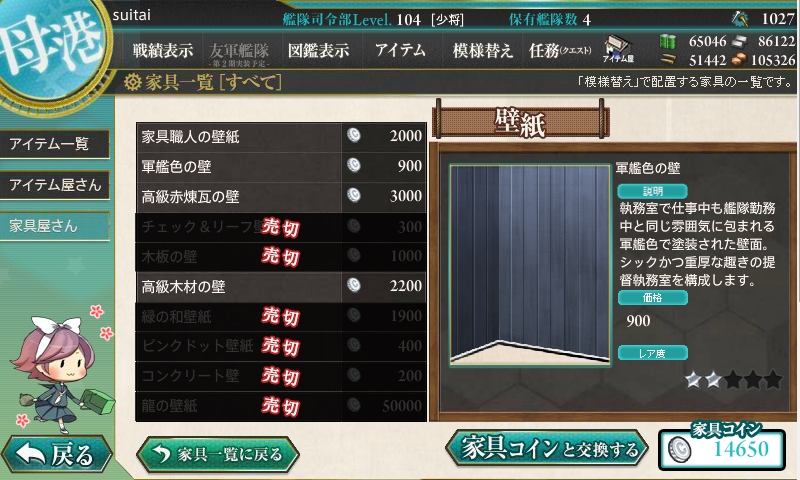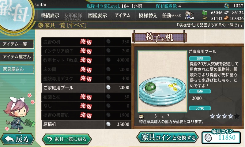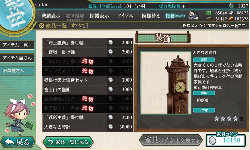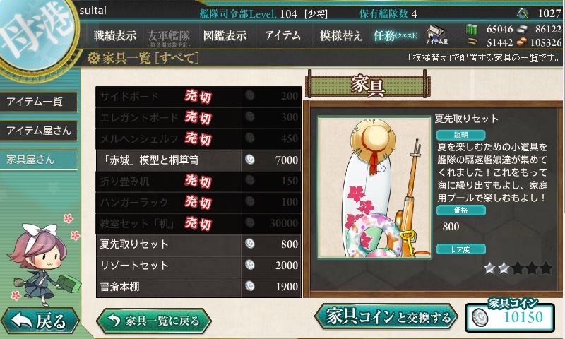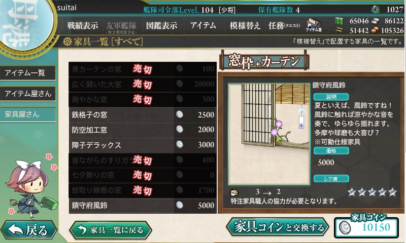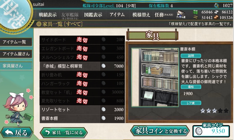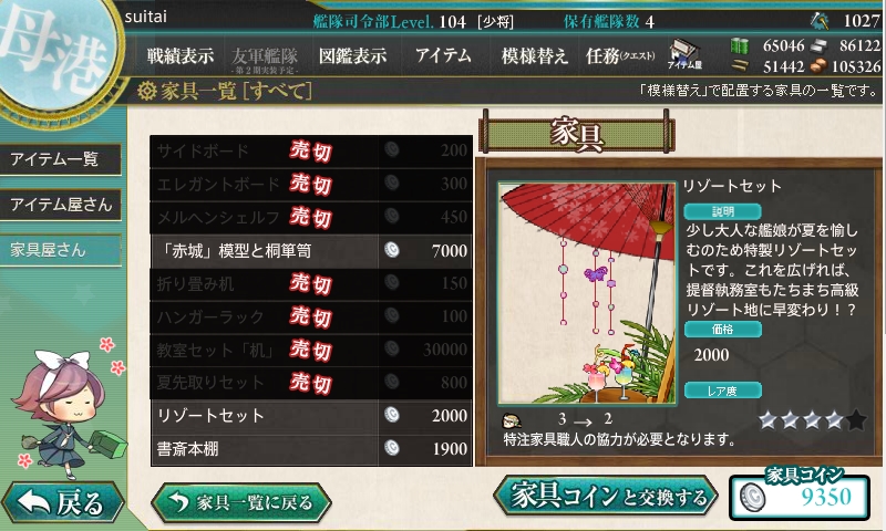 新規実装された家具で要家具職人は3つ、長者向けは2つです