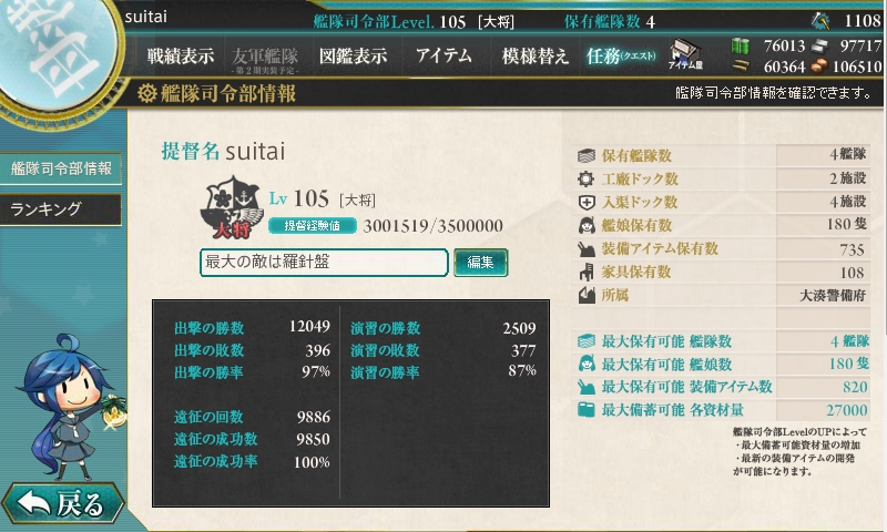 これでもまだ司令部レベル120(現時点での最大値)の1/5だから恐ろしいですな。