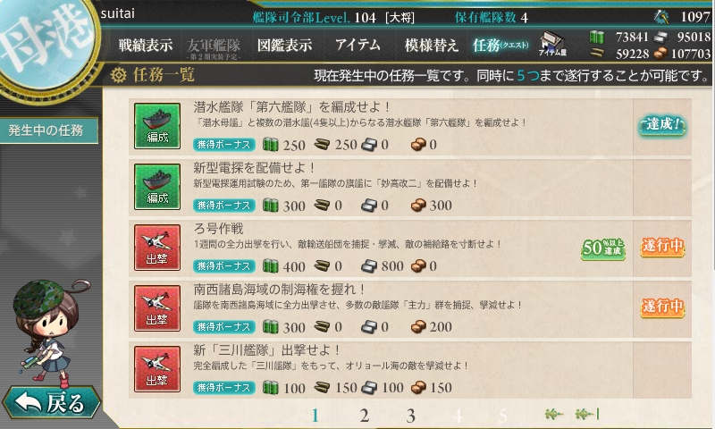 7月の2-5をやっていたら、(1週目で)大鯨ちゃん2人目が来ました。