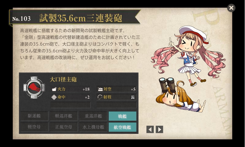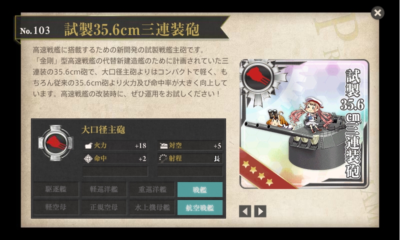 今回のアプデで戦艦主砲の大きさによる補正が付くようになったみたいですねぇ。