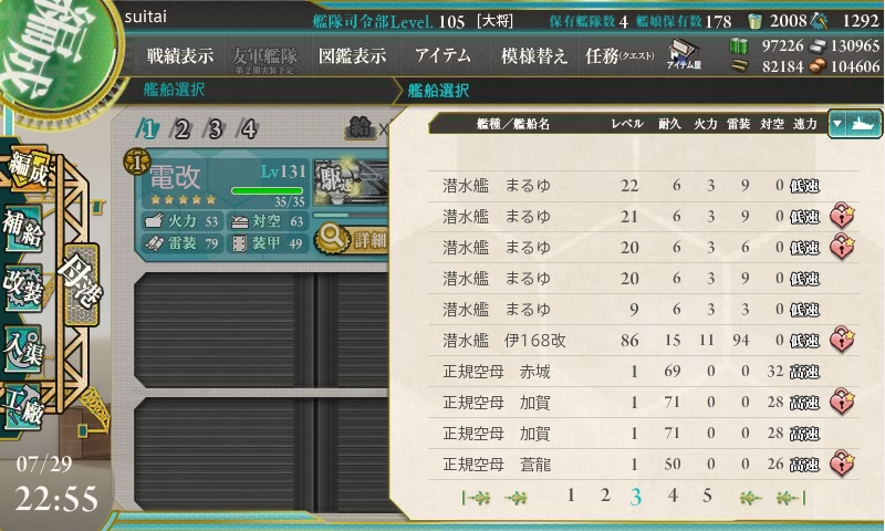 練度は十分。高速戦艦はよく使っていたので、気が付けばこのレベルでした。