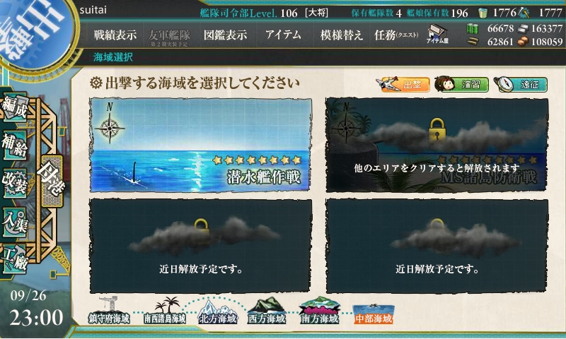 同時に実装された給料艦・伊良湖(使用するとキラキラするらしい)を6-1ボスS勝利で任務で獲得できるらしいのですが、かなり割に合わない……