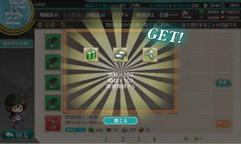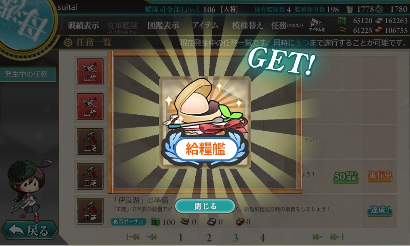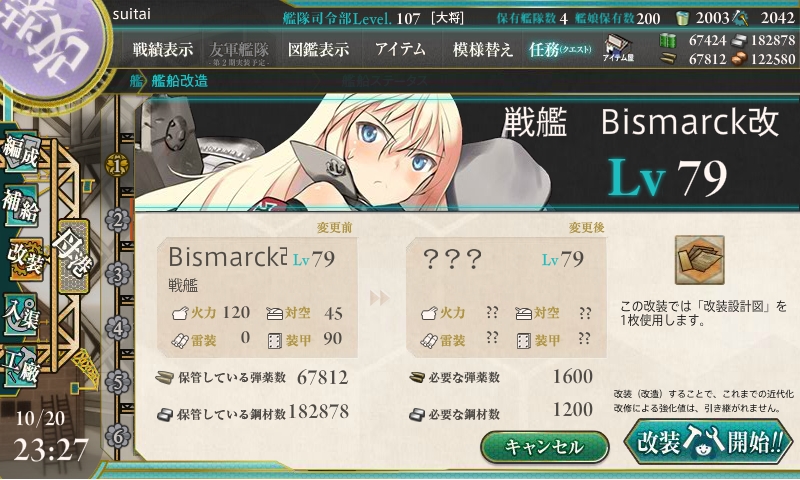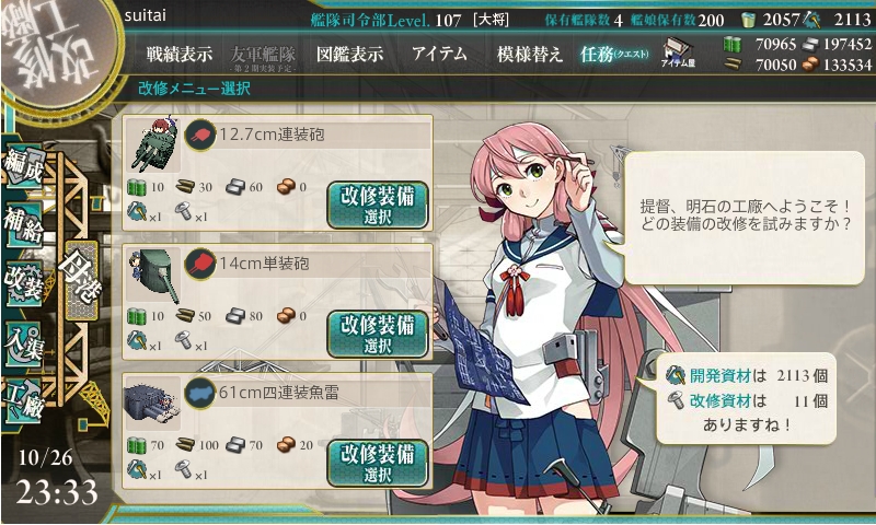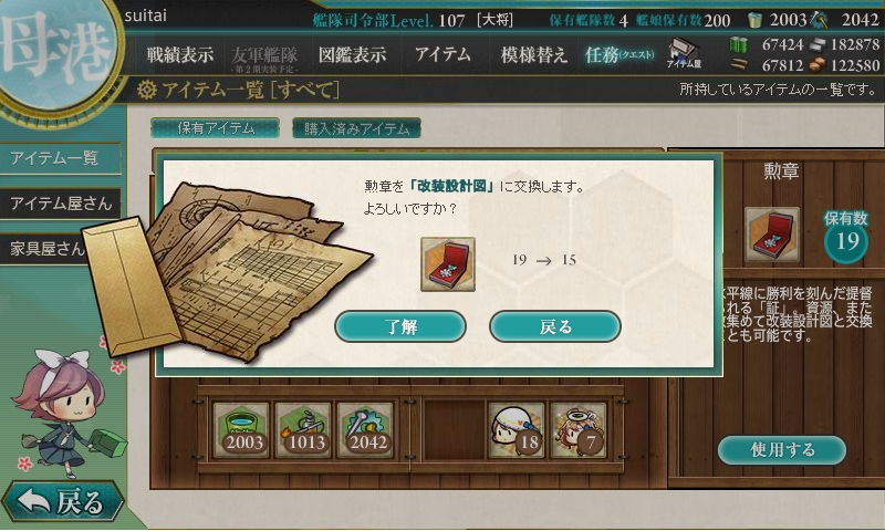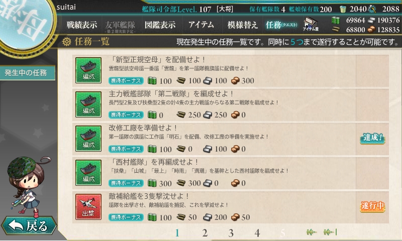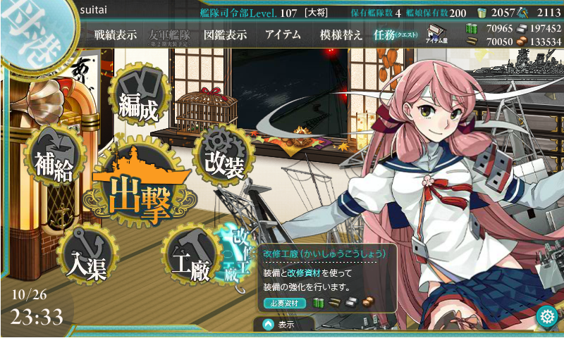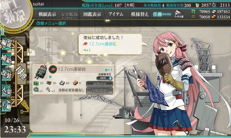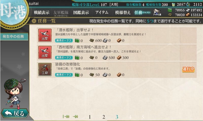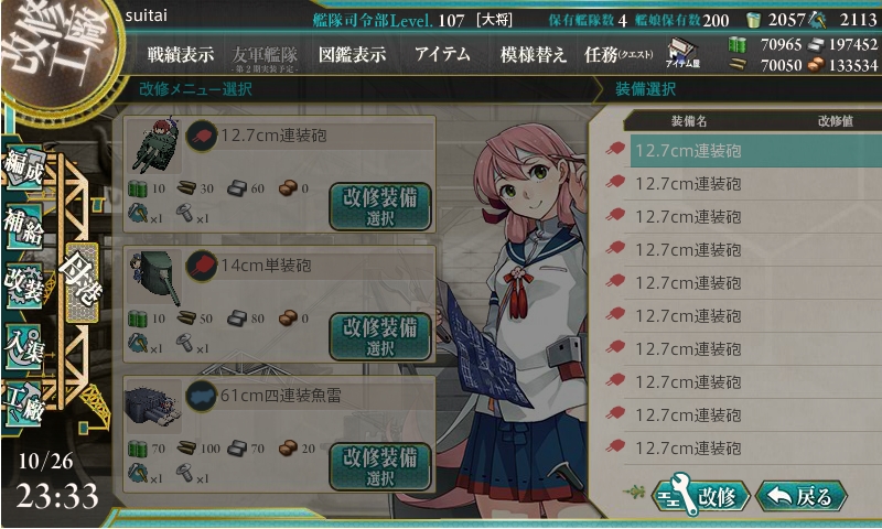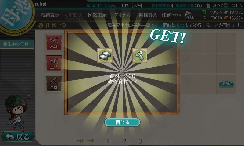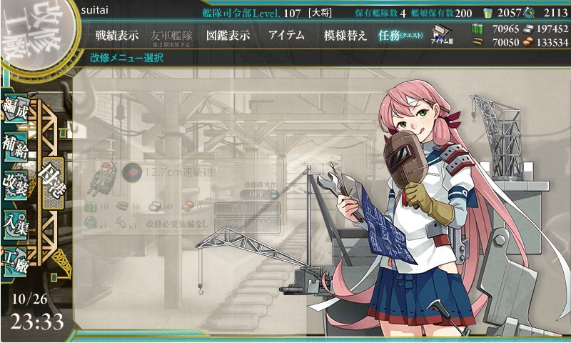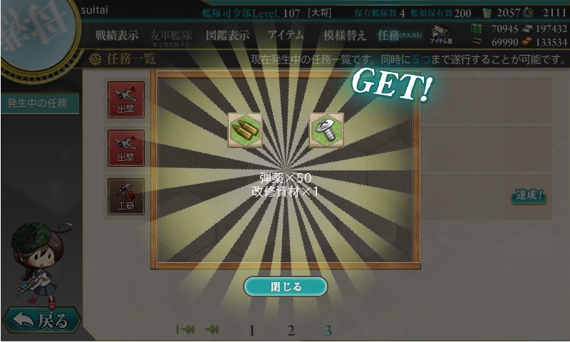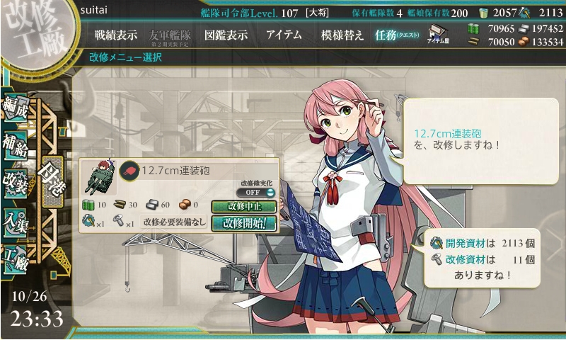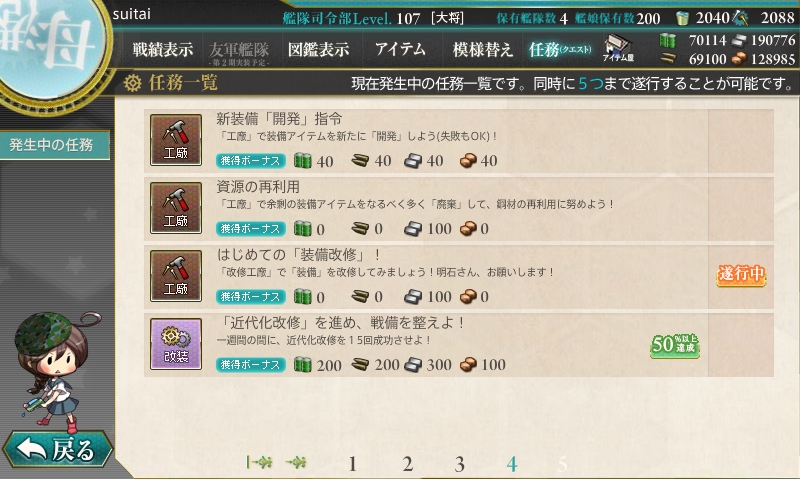 今までの開発1回、建造1回、開発3回、建造3回、解体2隻の後にデイリーに改修任務が出てきます。