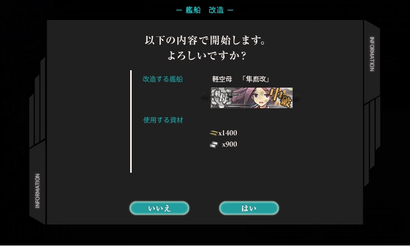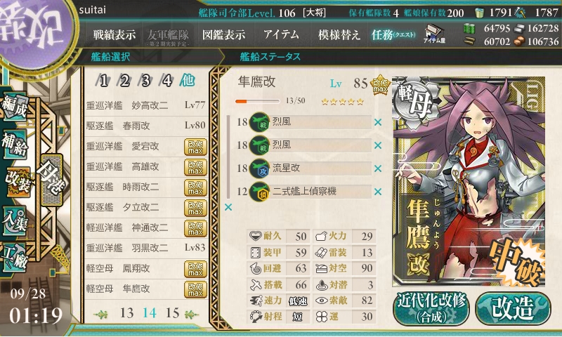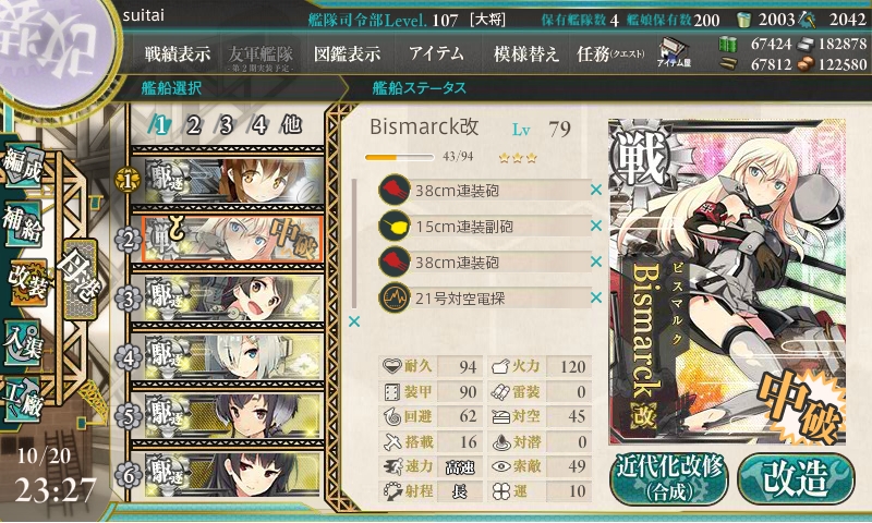 自分は20Lvまではキラ付けのおともにして、20Lv到達艦が5隻貯まったら改修、だからね。