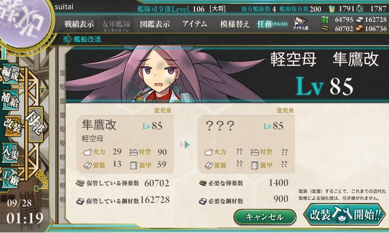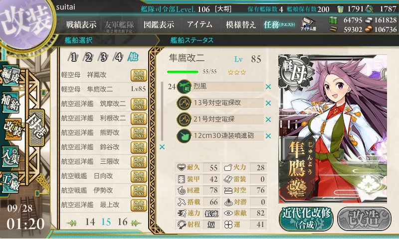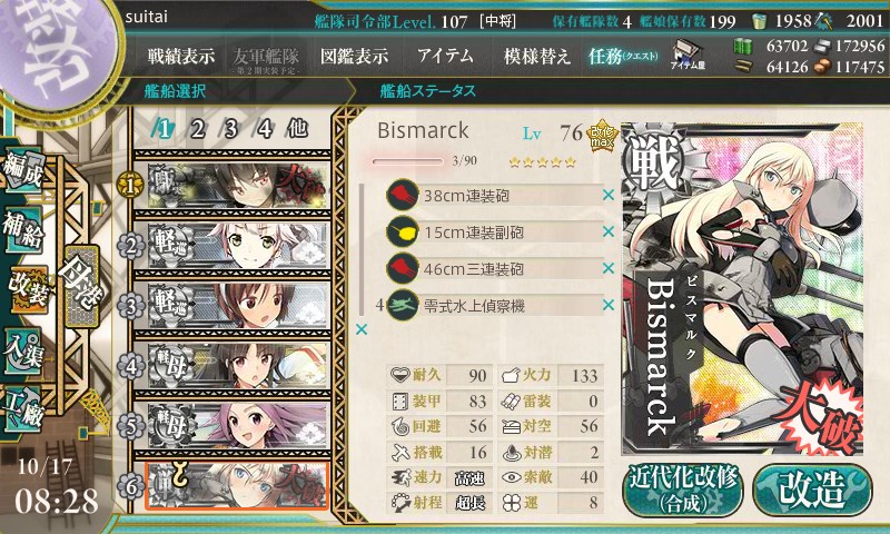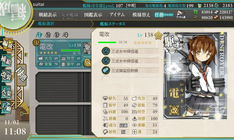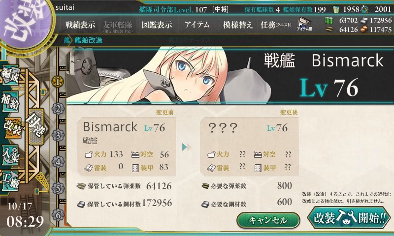 3日間で未改造→zwei(改二)までなりました。