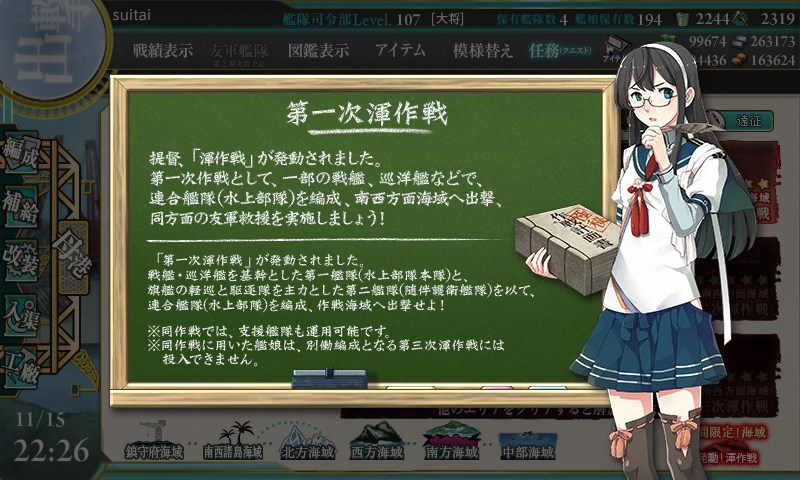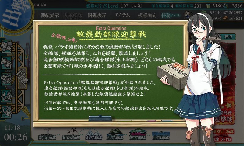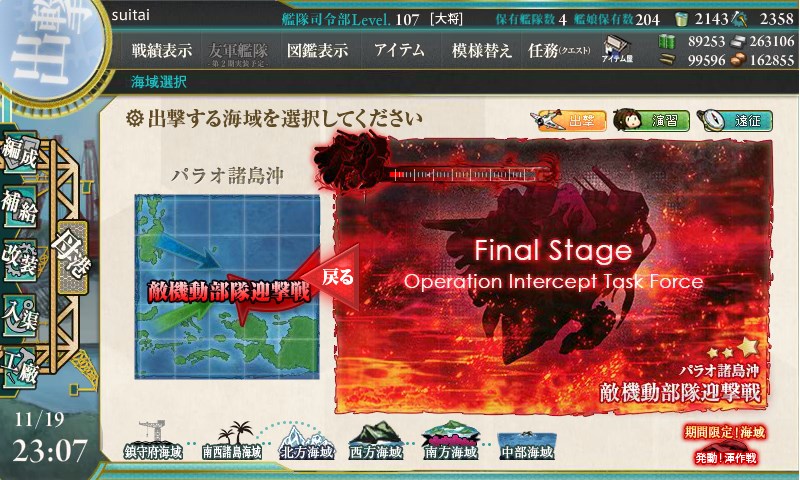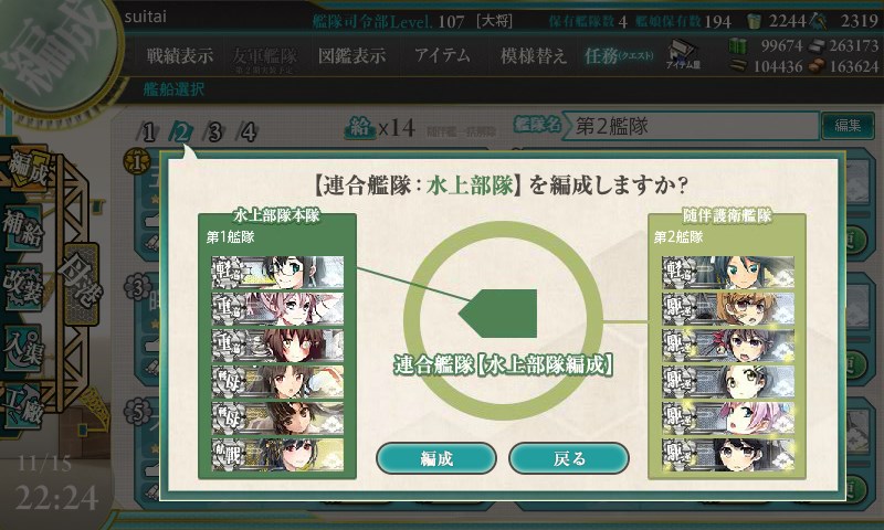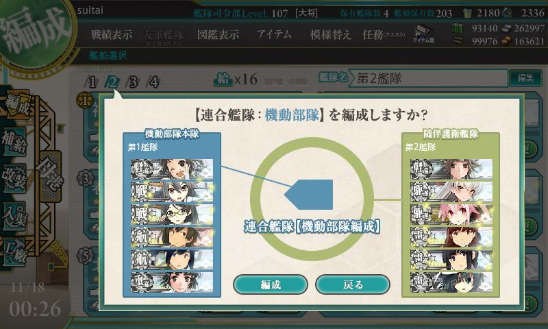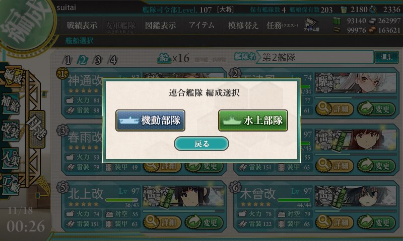E-4も連合艦隊での出撃となりますが、こちらは水上部隊か機動部隊を選択して出撃できます。