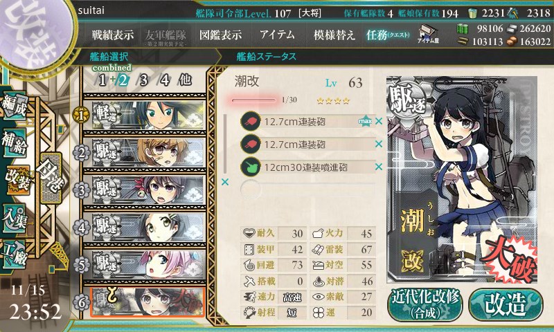 さっそく改二に改造しました。イベ日に実装されました。