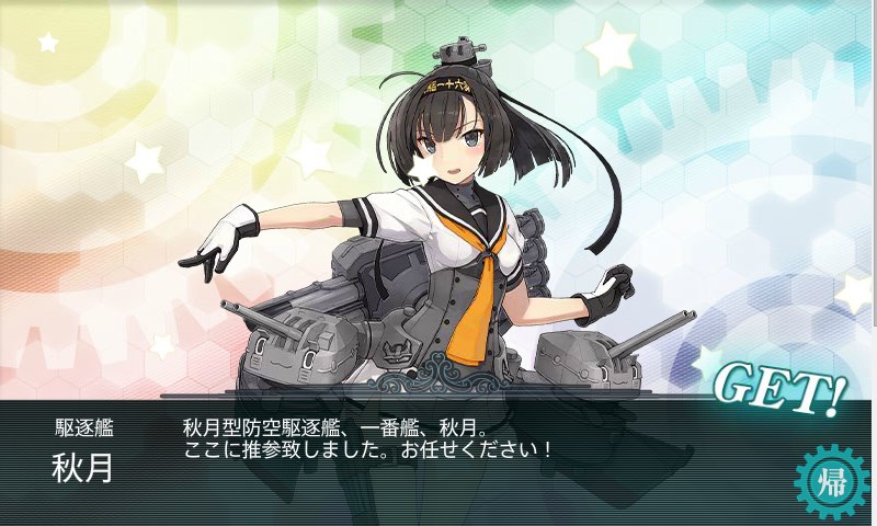 クリア報酬は新実装の駆逐艦、秋月。