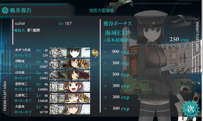 第一艦隊MVPはまさかのあきつ丸。あきつ丸で√制御あるっぽいんでいれています。