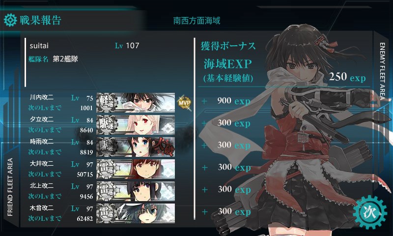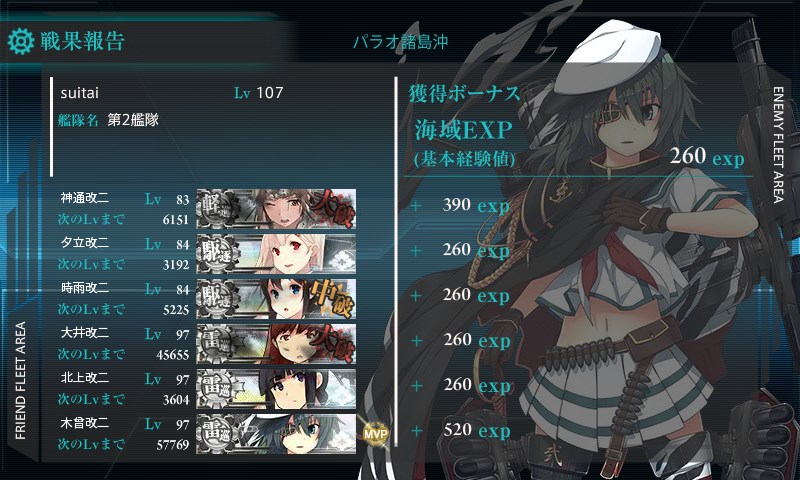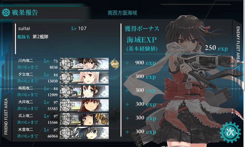第二艦隊MVPは川内。夜戦不可避。