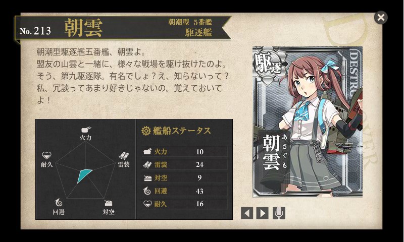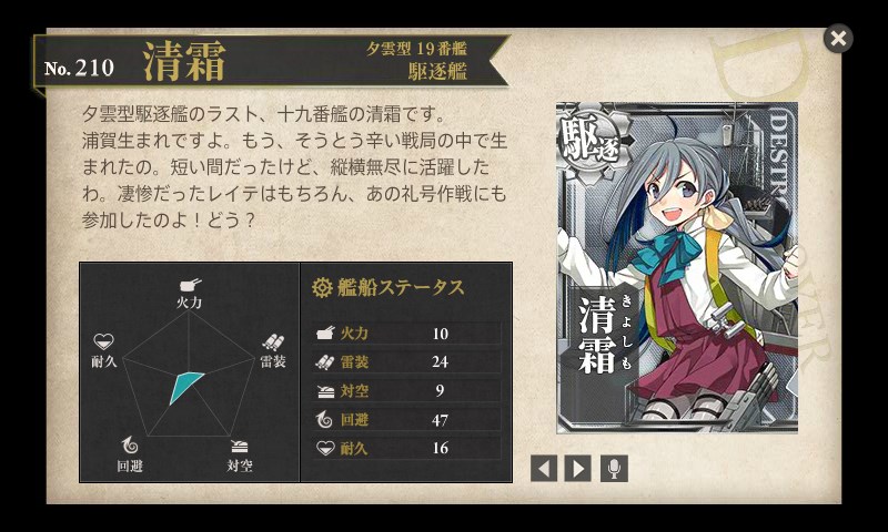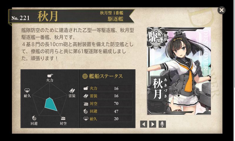 防空駆逐艦と言う分類らしく、すごく対空が高いみたいです。