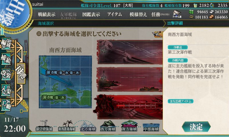 さて、あとは唯一の未所持艦である早霜を掘る作業のみです。