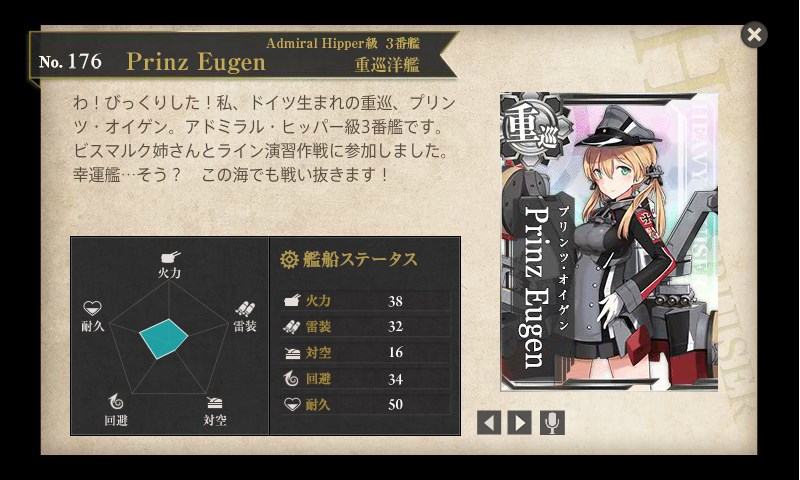 そして、突破報酬の重巡Prinz Eugen(プリンツ・オイゲン)ちゃん