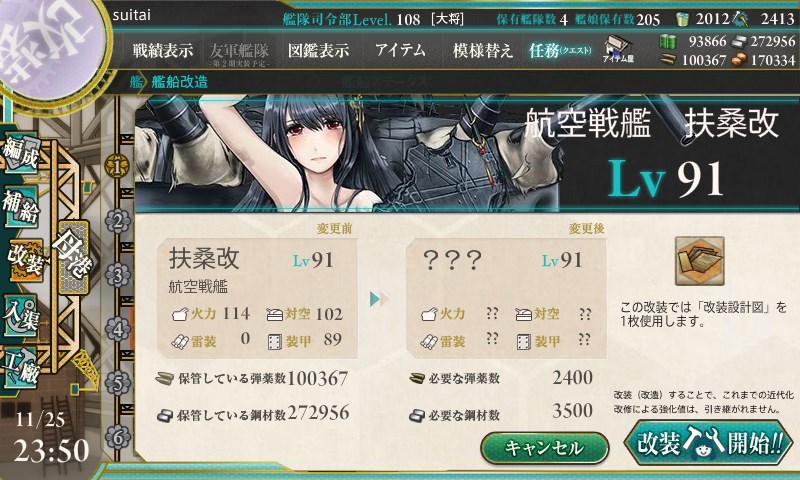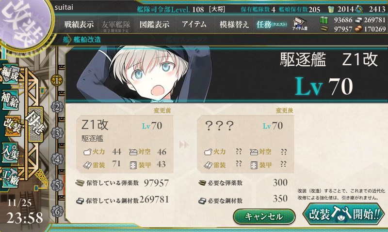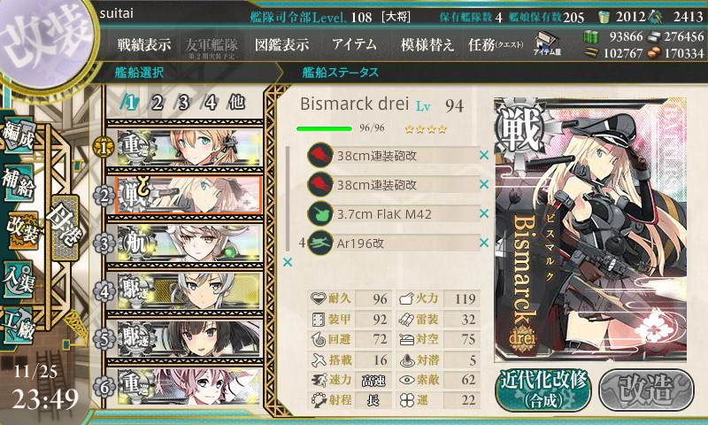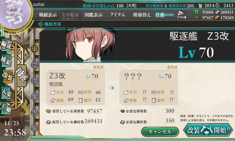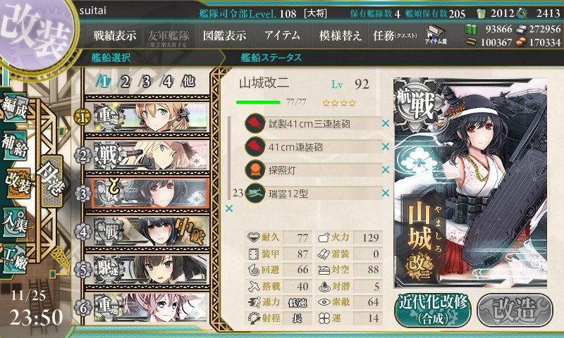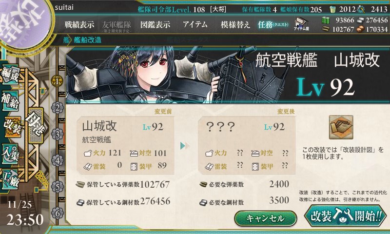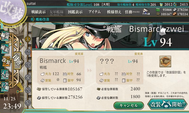 ビスマルクdrei、扶桑改二、山城改二、Z1改二、Z3改二への改装を完了しました。(多い
