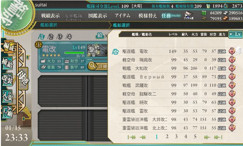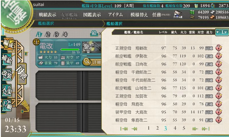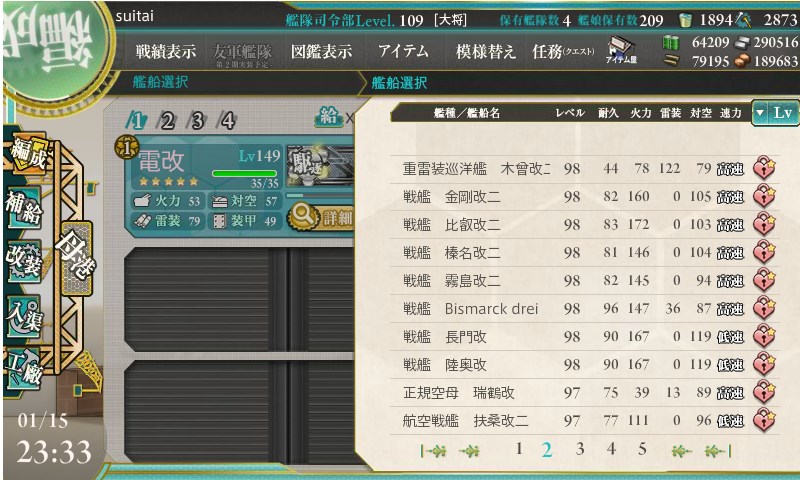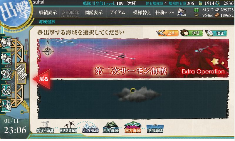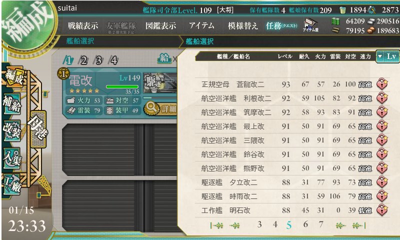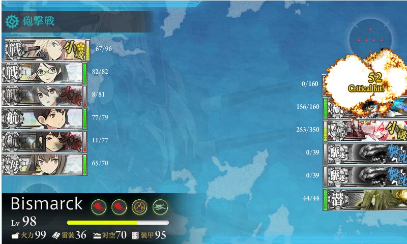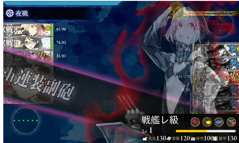 最後の雷撃戦は中破していれば参加できなくなるので、いかに昼戦にて中破以上に追い込めるか、が勝負です。