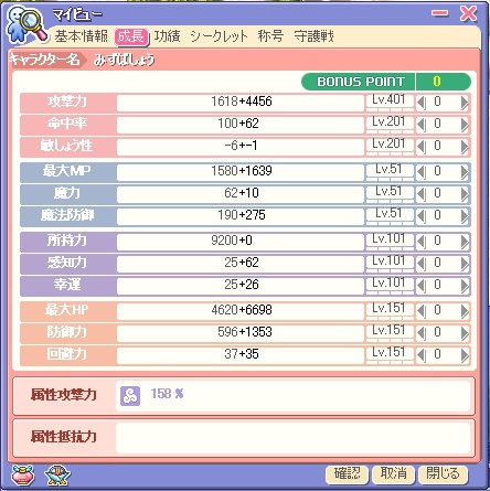 1Lvからちょうど200Lv上がって、ステ画面のきりがよくなりました。