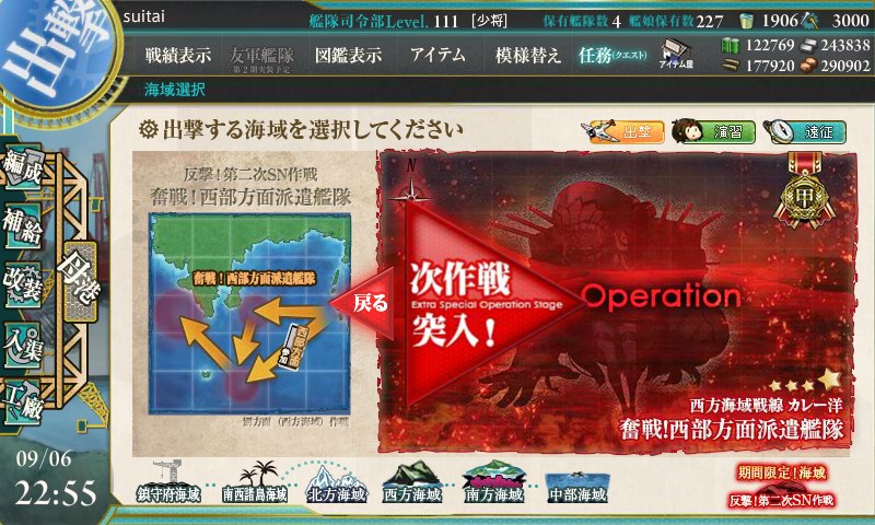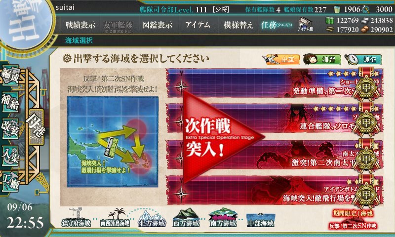 2015年夏イベ「反撃!第二次SN作戦」、無事に海域攻略しました。